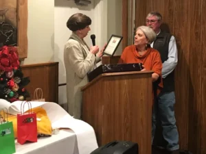 - Presenting the plaque to Pat and Mylon