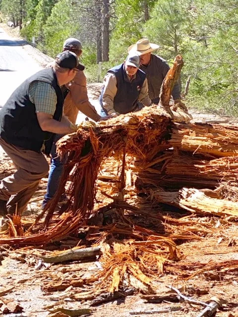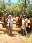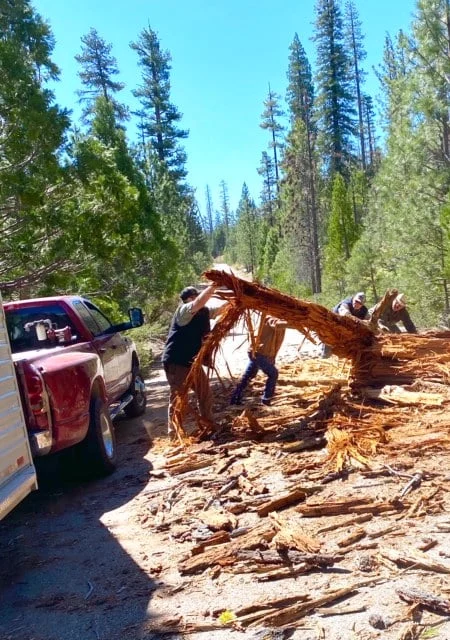 What we did accomplish was to replace the missing rails on 5 hitching rails and replace the top rails on two corral gates that were chewed almost all the way through. Fixing the hitching rails was easy compared to cutting and loading the rails to bring back to camp. If it weren’t for the young muscles of Garrett Gomez we might still be there! Peggy, Bonnie and Lynn rode down Angel’s Flight, crossed the Little Kern and cut three trees out of the trail and lopped brush in Kern Flats. Meanwhile after the gates and rails were done we went down the trail on foot and before we entered the wilderness, we cut 4 large down trees with a chainsaw, and returned to open some paths through some very long down trees. It was different to do a project outside the wilderness where we could use power tools. A big thanks to Lynn’s great cooking that kept us fueled and Dan’s cobblers that were real treats. Night time fun was stories and card games under the canopies where we stayed dry. Amid all the problems going on in the world, it was sure nice to spend the time in a pleasant place and no worries about the rest of the world with a great group of Backcountry Horsemen doing their part to keep forest facilities kept up for equestrian use. A big shout out to the crew of Dusty Gomez, Garrett Gomez, Dan (Boon) Shuggart, Bonnie Searcy, Peggy Whitaker, Lynn Joiner and Robert Anderson. Mardee Tucker  and Melany Shuggart joined us Saturday. I hope to see you at the next project.